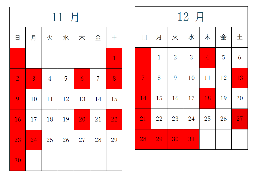 11月,12月の診療日は以下の通りです.
